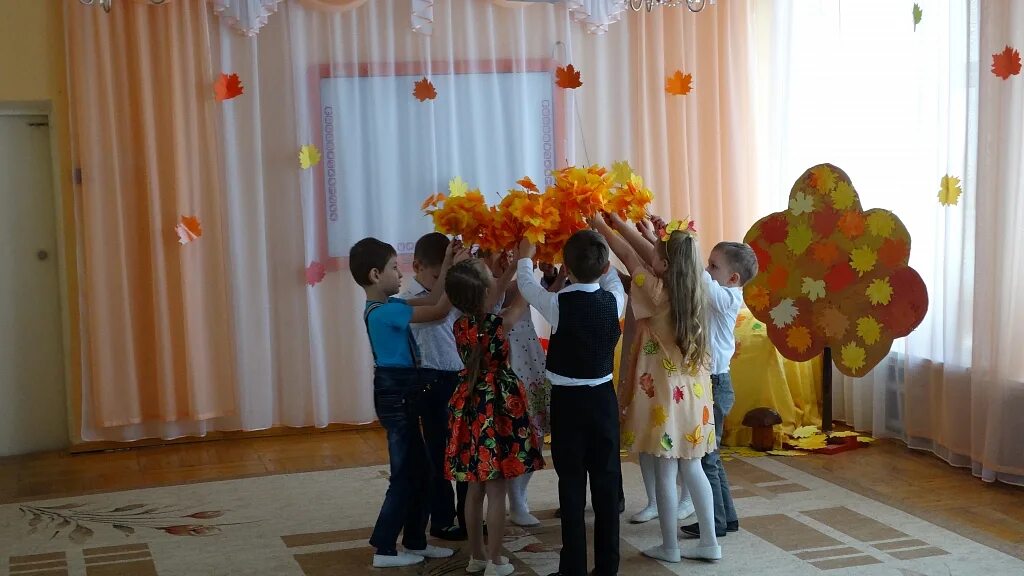 Осенний кленовый листочек, который залетел в детский сад, поможет нам.