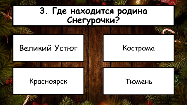 У каждой команды свой цвет подсказок: синий – Снегурочка, оранжевый – Снеговик, зеленый – Ёлочка.