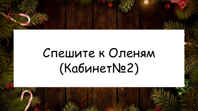 Материально-техническое обеспечение: 2 ноутбука, колонка, микрофон, карандаши, листы с заданиями, конверты, контейнеры от киндер сюрприза, часы (лучше карманные), разрезанное фото часов на три части, фотозона, костюмы: Деда Мороза и Снегурочки, оформление для подсказок: Олень, белый медведь, цифра 2025, камин.
