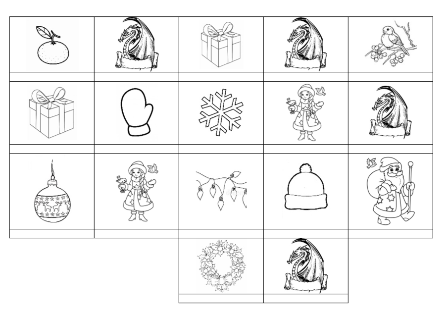 Ёлочка: Пора собираться в поисковую экспедицию! Для успешного исхода поделимся на три команды. У кого картинки волшебные есть? Посмотрите внимательно! Снежинки пойдут на встречу приключениям вместе со Снегурочкой.