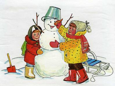 Зимой дети катаются на лыжах, велосипеде, играют в мяч, лепят снежную бабу, прыгают через скакалку, играют в хоккей, в футбол, загорают, строят снежную крепость…