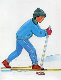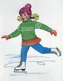 6. Рассматривание отдельных картинок (мальчик на лыжах, девочка на коньках…), составление предложений по вопросам
