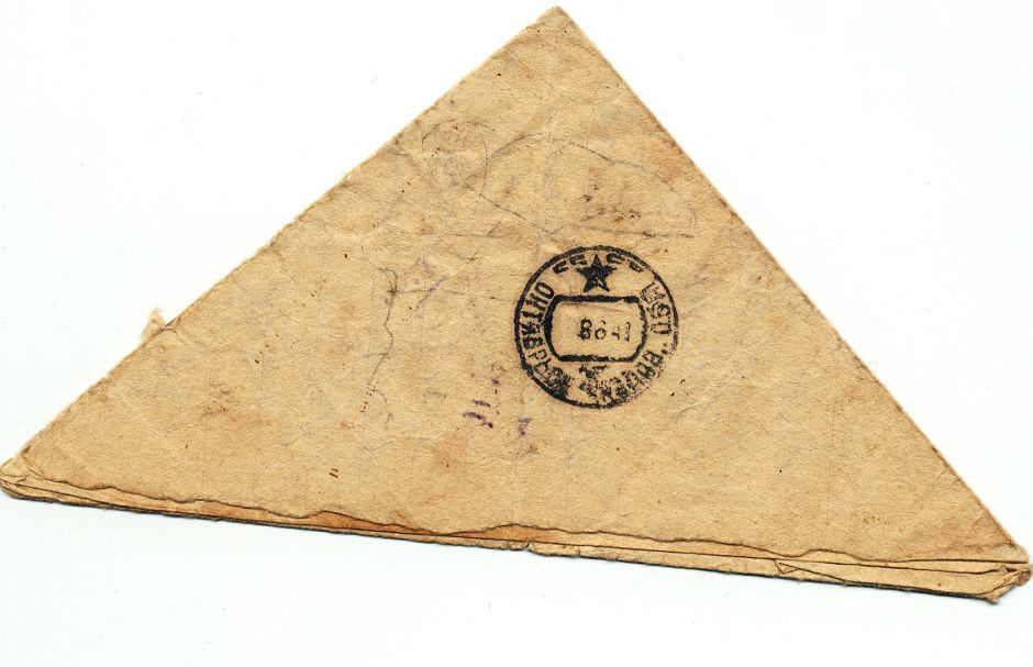 Солдатские письма были треугольными без конвертов и марок, т.к. на фронте марок и конвертов не было.