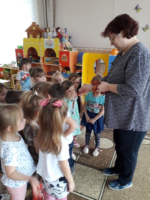 Воспитатель: -Ребята, на память о нашем разговоре примите Георгиевскую ленту, ещё один символ Победы, о котором я расскажу вам в следующий раз.