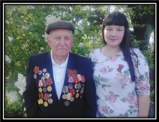 В этом году случилась беда, 10 января 2020г. умер мой прадедушка. Я очень любила его. Память о нем всегда будет жить в моем сердце. Он – отец моей бабушки – матери моего отца. И я живу на этой земле, благодарная ему: без него не было бы и меня… И я горда тем, что у меня был такой прадедушка, участник Великой Отечественной войны, который вместе с другими советскими солдатами подарил нам чистое мирное небо над головой. Прадедушка прошел долгий и нелегкий, но славный жизненный путь, он навеки вписал свое имя в историю событий Великой Отечественной войны и Великой Победы, своей семьи и страны. Он был верным сыном своего Отечества.