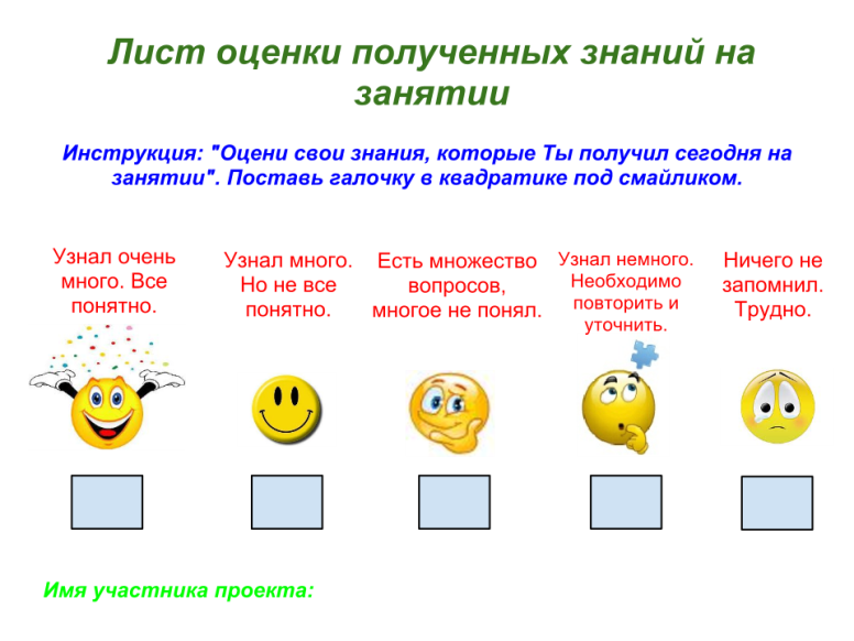 - Заполните лист самооценки.