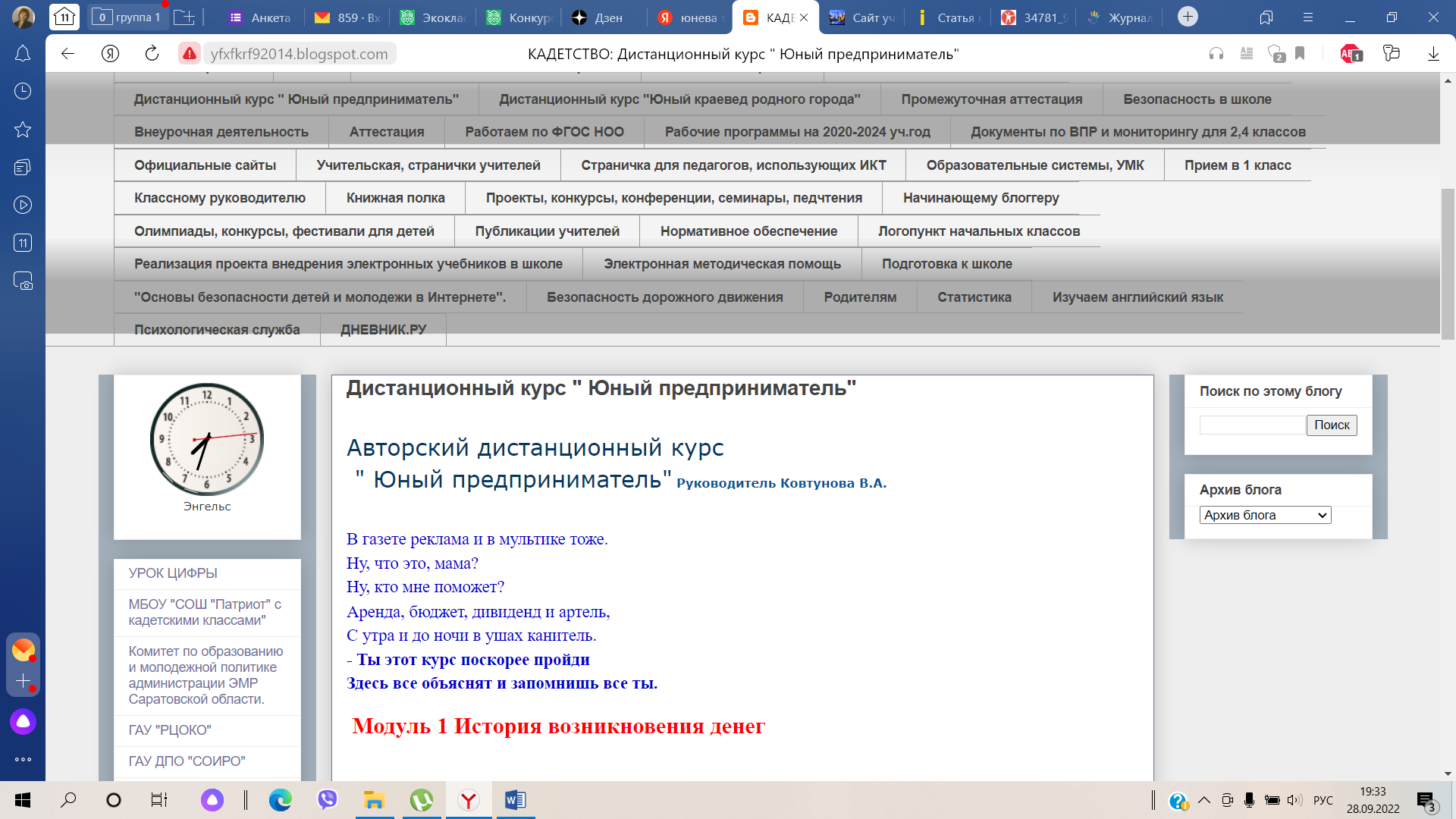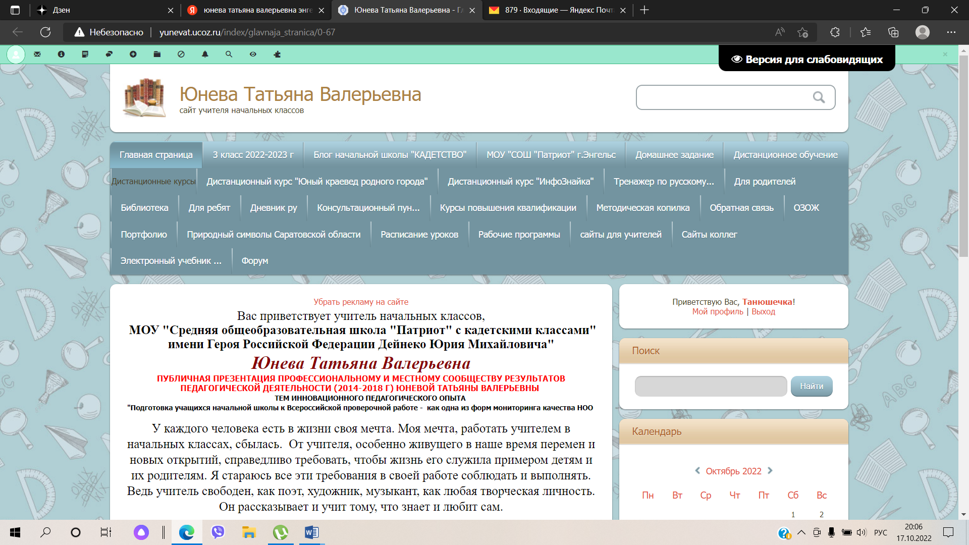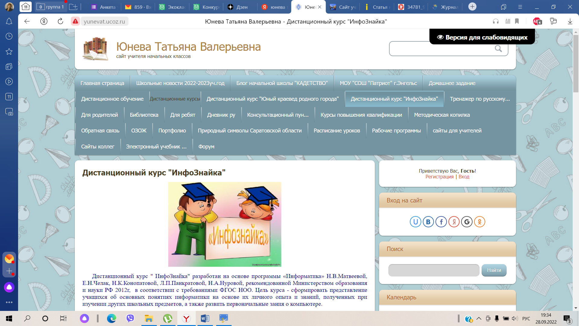 «Сайт педагога как механизм реализации дистанционных курсов «Юный краевед родного города» (составленный на основе авторской программы «Любимый сердцу уголок – наш родной городок») и «ИнфоЗнайка» (на основе курса «Информатика»)