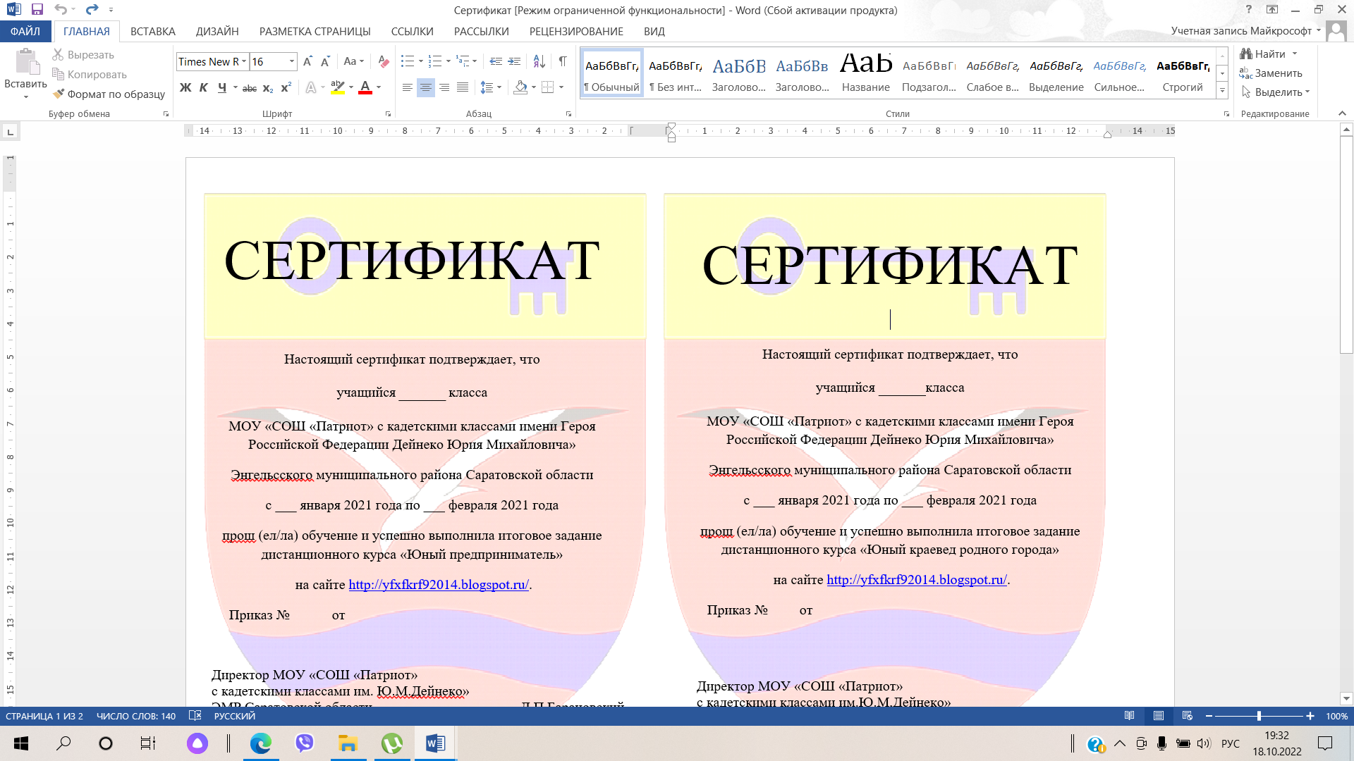 Саратовская область г.Энгельс МОУ « СОШ «Патриот» с кадетскими классами