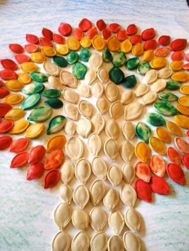 Поделки из тыквенных семечек своими руками Тыквенные семечки – это легкодоступный осенний материал, из которого можно изготовить множество разнообразных поделок. Поделки из тыквенных семечек могут быть объемными или плоскими, сделанными в виде аппликации. | Показ, объяснение. | Наиболее подходящая тема, которой может быть посвящена поделка из тыквенных семечек – осень. Можно создать различные картины и объемные изделия, посвященные осенней тематике. | Осенние поделки из тыквенных семечек. (показ) |