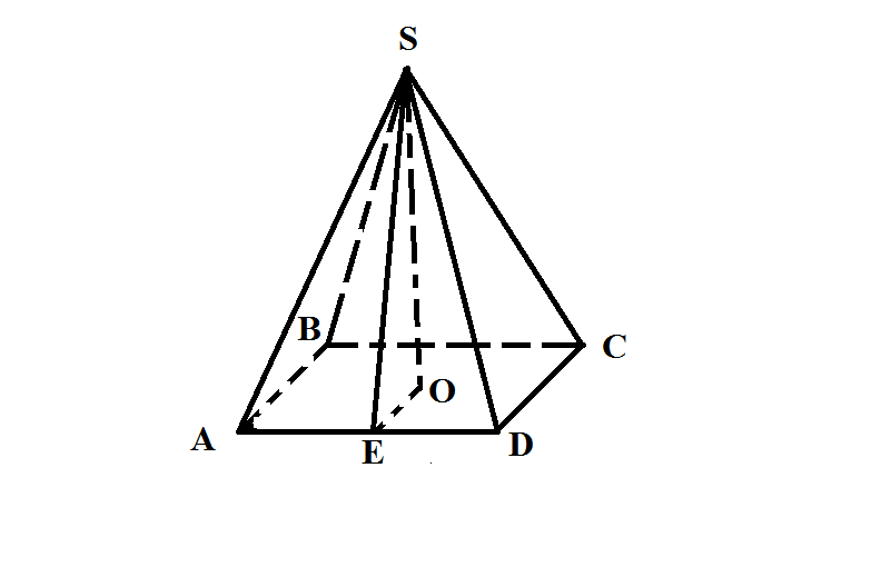 Найдите площадь боковой поверхности пирамиды, если АВ = 5см., SЕ = 10 см.
