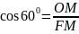 По условию угол между апофемой FM и основанием пирамидыравен 600 (∟FMO = 600) =>