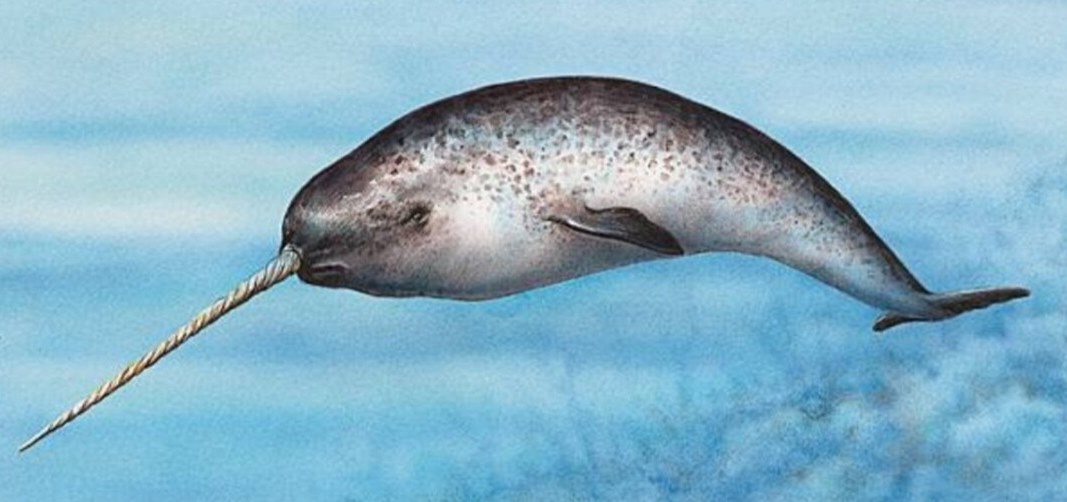2. На рисунке представлен «морской единорог» - нарвал. Бивень этого китообразного млекопитающего - это: а) носовой нарост; б) теменной рог; в) огромный клык; г) нарост лобной кости.