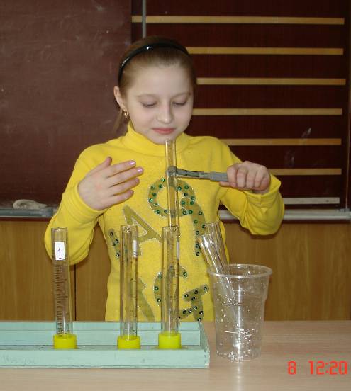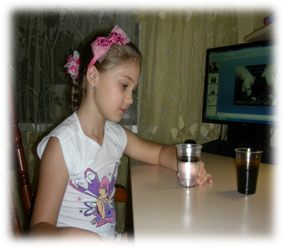 Так появилась первая исследовательская работа «Какую воду мы пьем?», автор Полина П. Выполняя работу, Полина сделала запрос шкалы интенсивности запаха и вкуса в Томскводоканал, встретилась с представителями данной организации. В результате исследования сделала вывод о том, что лучше всего пользоваться ключевой водой, т.к. она больше всех исследуемых вод соответствует потребительским стандартам. Сначала исследовательская работа была представлена на городской научно - практической конференции «Исследовательский дебют» в рамках городского проекта «Юные дарования - Томску» и получила высокую оценку, затем на областном фестивале проектов, где нашей работе была присвоена первая категория. Работа носила инновационный характер, рекомендована педагогам Томской области к использованию в своей профессиональной деятельности.