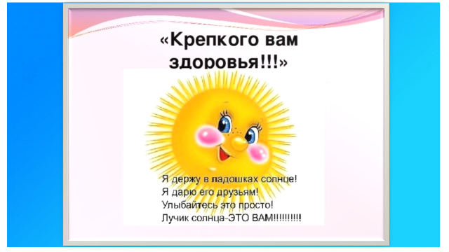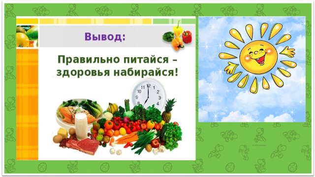 II. Постановка цели занятия. III. Открытие нового знания. IV. Основная часть. Восприятие, осмысление и усвоение обучающимися знаний по теме. V. Итог занятия. Рефлексия. | Письмо и необычный гость. - Посмотрите, кто сегодня в гости к нам пришёл? -Посмотрите, ребята! Солнышко нам что-то прислало! Что это? -Давайте прочитаем! «Здравствуйте, дорогие ребята! Ох, заболело я немножко! И поэтому мне очень грустно сейчас! Я немножко забыло, как нужно правильно беречь своё здоровье! Возьмите меня с собой в путешествие! Мне станет веселее!» - Ребята! Возьмём солнышко с собой? - Итак, мы начинаем наше путешествие в страну здоровья на весёлом автобусе! -Настроение у нас отличное, А улыбки – дело привычное. - Итак, закрываем глазки!1,2,3,4,5! Открываем их опять! И мы с вами очутились с нашим солнышком в волшебной стране здоровья. 1 остановка «Чистота». -Наш автобус прибыл на первую станцию под названием «Чистота». -Чистота – залог здоровья. Наверное, вы не раз слышали это выражение. Каждый знает, что нужно обязательно мыть руки. Покажите, как мы моем руки! -Регулярно чистить зубы. Покажите, как мы чистим зубы! -Давайте отгадаем загадки и назовём, что нам помогает быть чистыми и аккуратными. - Ребята! Я буду вам загадывать загадки! А вы должны найти отгадки – картинки в классе и прикрепить на доску! (по очереди) Загадки. 1.Гладко, душисто, моет чисто Нужно, чтоб у каждого было Что, ребята? (мыло) -А зачем нужно мыть руки? 2.Целых 25 зубков Для кудрей и хохолков И под каждым под зубком Лягут волосы рядком. (расчёска) -Можно ли пользоваться чужой расчёской? -Правильно, по правилам личной гигиены расчёска у каждого человека должна быть своя! 3.Вафельное, полосатое, Гладкое, лохматое, Всегда под рукою, Что это такое? (полотенце) - Можно ли вытираться чужим полотенцем? - Какие полотенца можно использовать (Чистые, сухие) 4.Эта щётка не проста, (зубная щётка) 5.В тюбике живёт Змейкой из него ползёт Неразлучна с щёткой часто Мятная зубная (зубная паста) -Сколько раз в день нужно чистить зубы? -Молодцы, ребята! -Какие предметы помогают нам быть чистыми? - Как называлась наша остановка? (чистота) -Солнышку понравилось, как вы справились с заданием! Мы отправляемся на автобусе дальше! 2 остановка«Правильное питание» - Остановка называется «Правильное питание». -Посмотрите, пожалуйста, на слайд! Здесь будут появляться различные картинки полезных продуктов! Вспомним их названия! -Зачем человеку нужно правильно питаться? -Правильно! Ещё одним условием для здоровья каждого человека является правильное питание. - Давайте поиграем в игру «Полезные и вредные продукты». - Представим с вами, что мы пошли в магазин! Нам нужно набрать в корзину только те продукты, которые принесут нам пользу! На столе лежат разные продукты (полезные и вредные). Мы подходим к столу по очереди, берём нужный продукт и кладём его в корзину! - А давайте назовём вредные продукты! Можно ли их употреблять в пищу? - Как называлась наша остановка? (слайд 9) - Верно! Правильно питайся-здоровья набирайся! Продолжим путешествие с нашим замечательным солнышком! 3 остановка «Спорт» - На доске вы видите перепутанные цифры! (цифры от 1 до 5, на обратной стороне буквы С П О Р Т) -Расставим их в правильном порядке! Я переверну цифры, здесь появятся буквы! Это название станции! Прочитаем хором, что получилось! - Всё верно! Наша остановка называется спорт! Важную ро