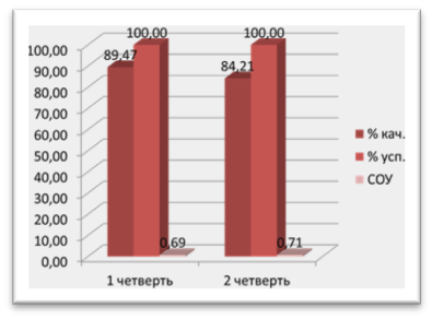 Наблюдается устойчивая положительная успеваемость, повысилось качество знаний и степень обученности (СОУ) по предметам;