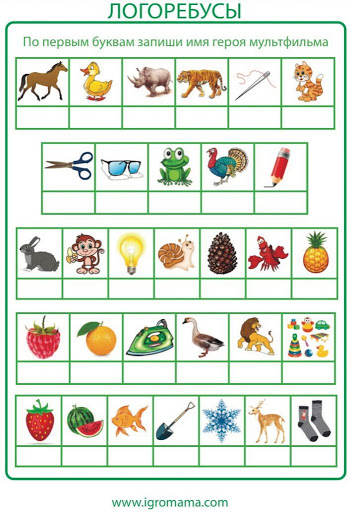 Предлагается набор картинок в определенном порядке. Необходимо по начальным буквам «расшифровать» слово.