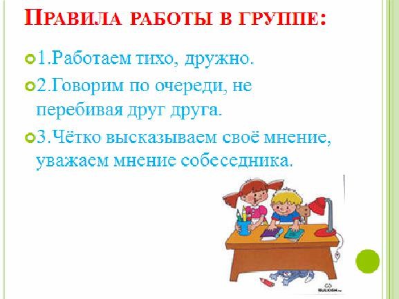 Чтобы работа в группах проводиласьуспешно,нужно соблюдать правила работы в группе. -Давайтеихвспомним. Слайд 3. | Правилаработывгруппе: