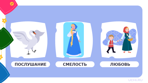 - Ребята, соедините сказку с нравственными ценностями, которые в ней раскрываются. Вспомните названия сказок. («Гуси-лебеди», «Снегурочка», «Сестрица Алёнушка и братец Иванушка».)