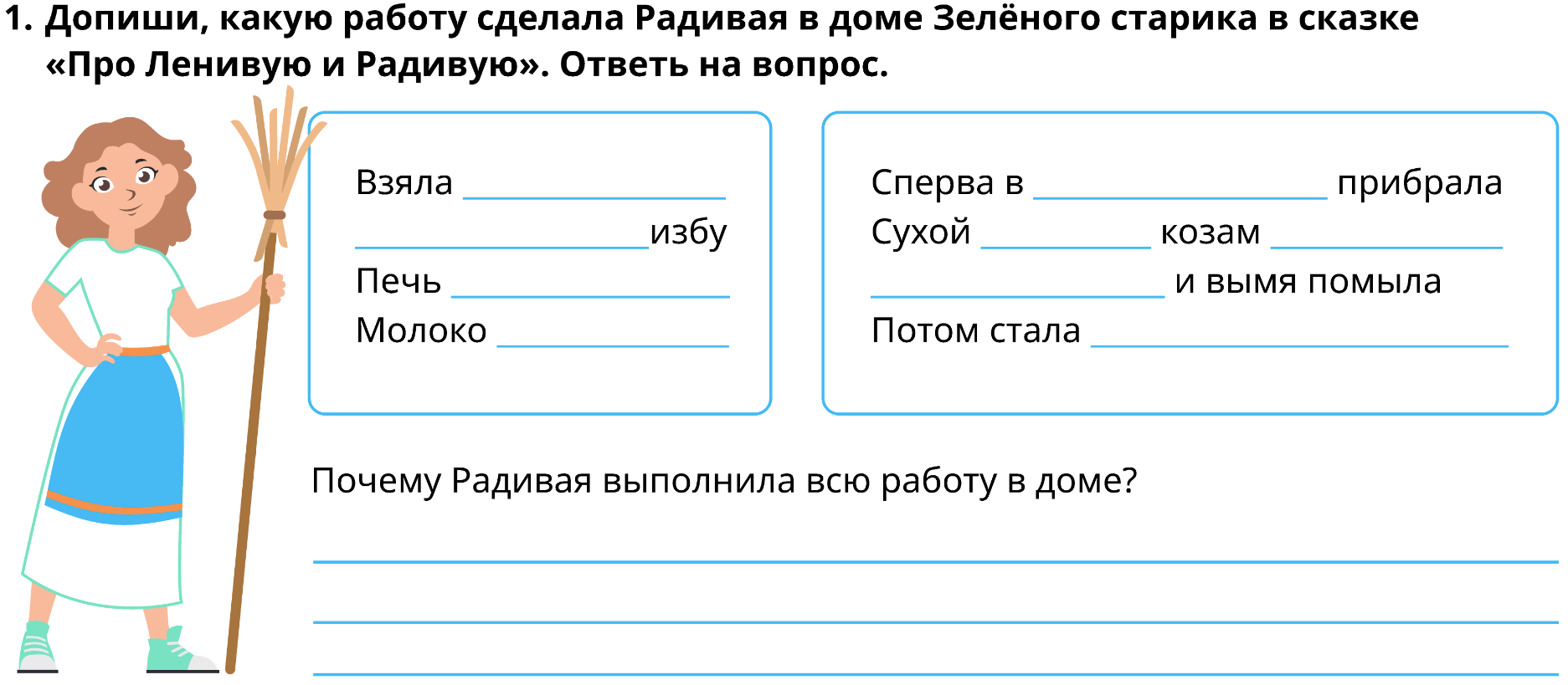 Будем учиться находить в героях русской народной сказки «Про Ленивую и Радивую» качества трудолюбия.