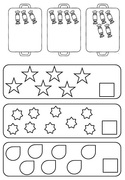 Посчитать предметы и записать в окошечко их количество.