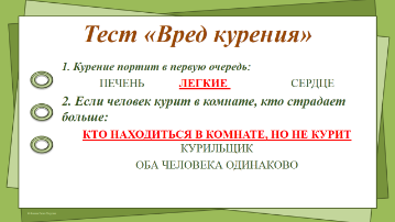 Средства наглядности:раздаточный материал: карточки с содержанием о вредных привычках, их изображением, тесты; презентация к уроку