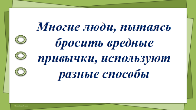 - Как вы думаете, какой способ наиболее : приемлем для людей с небольшой степенью зависимости? Обоснуйте свое мнение.