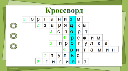Отгадав кроссворд, мы узнаем какое слово зашифрован в зеленом столбике