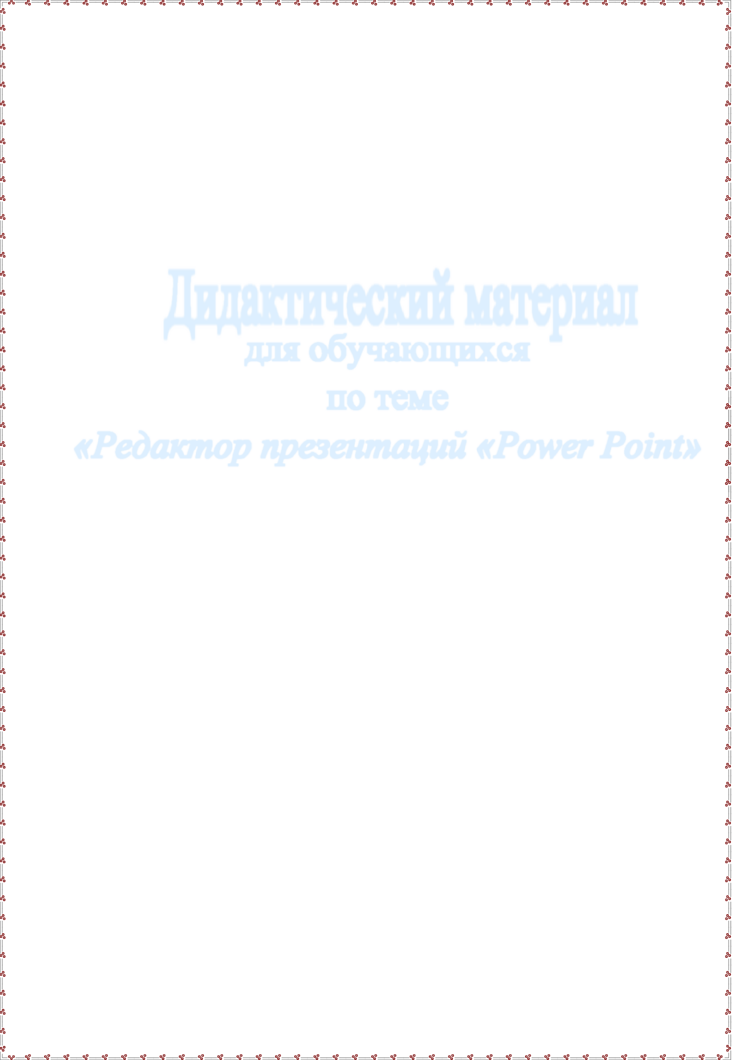 Дидактический материал для обучающихся по теме "Редактор презентаций Power Point"