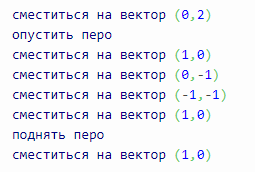 Перечислите команды исполнителя Чертежник? (опустить перо, сместиться на вектор)