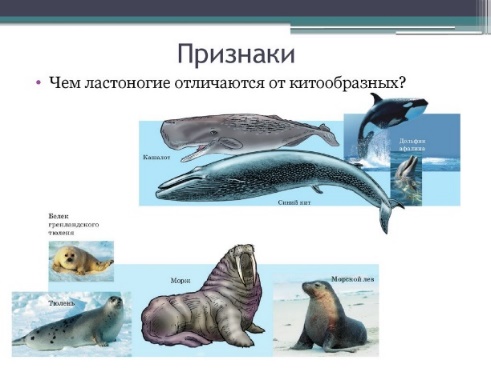 (Слайд 44) Задание: какое самое главное отличие китообразных от ластоногих?