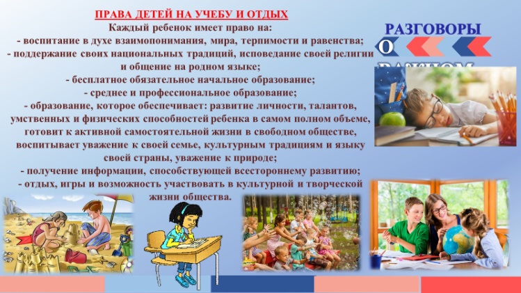 ПРАВА ДЕТЕЙ НА УЧЕБУ И ОТДЫХ