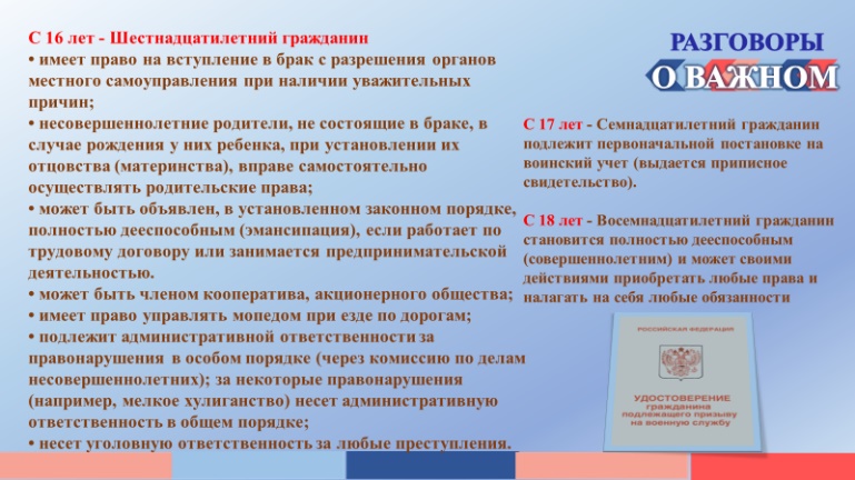 • имеет право на вступление в брак с разрешения органов местного самоуправления при наличии уважительных причин;