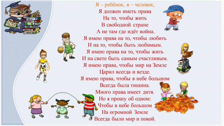 Поэтому они все написали Закон. Они привели в этом документе список прав, которые имеет каждый человек на Земле, в том числе и ребенок, для того чтобы все знали и уважали эти права.