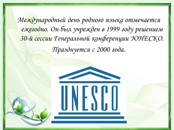 Международный день родного языка, прежде всего, направлен на защиту языков, которые исчезают. И задача эта важная, ведь в наши дни каждый месяц в мире исчезает два языка....