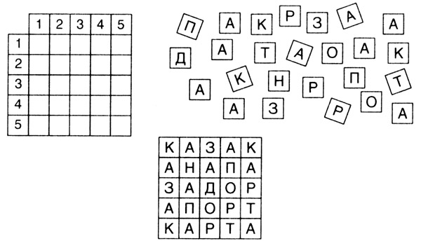 Ответ: 1. Казак. 2. Анапа. 3. Задор. 4. Апорт. 5. Карта.