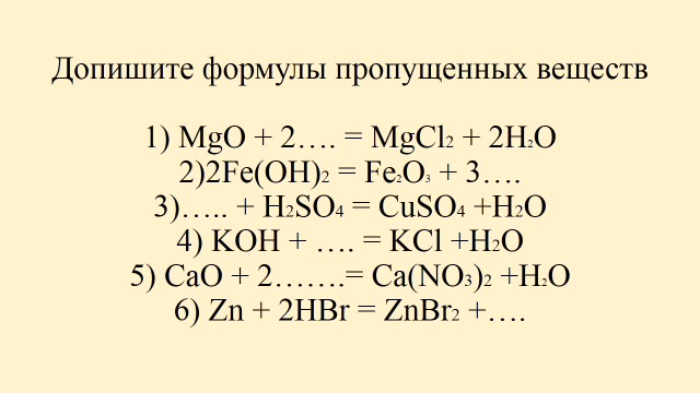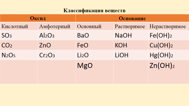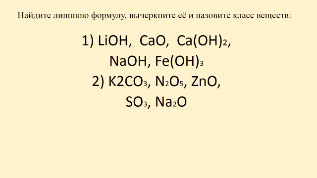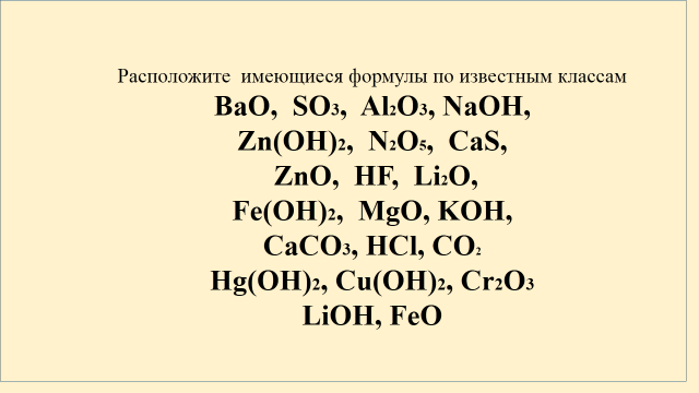 2 | Актуализация знаний о классификации веществ, проверка и закрепление основных понятий; постановка учебной проблемы Цель: диагностика усвоения темы классификации веществ и подведение учеников к формулированию новой темы и постановке задач на уроке | Предлагает задания на слайдах 1)