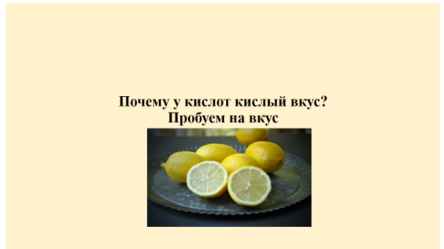 Реактивы: растворы соляной и серной кислот, аскорбиновая, кусочки лимона, метилоранж, лакмус, фенолфталеин, универсальная инд. бумага; штатив с пробирками, компьютер, проектор.