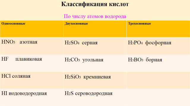 Цели урока: сформировать понятие «кислота», познакомить учащихся с составом, названиями, классификацией и представителями класса кислот.