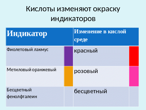 Урок химии в 8 классе по теме «Кислоты»