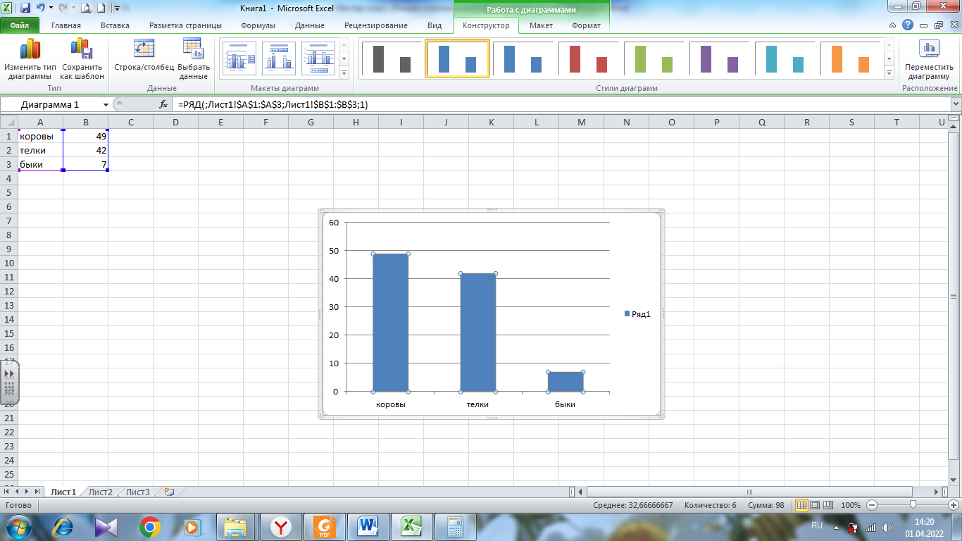 2) По результатам задания 1 постройте столбчатую диаграмму.