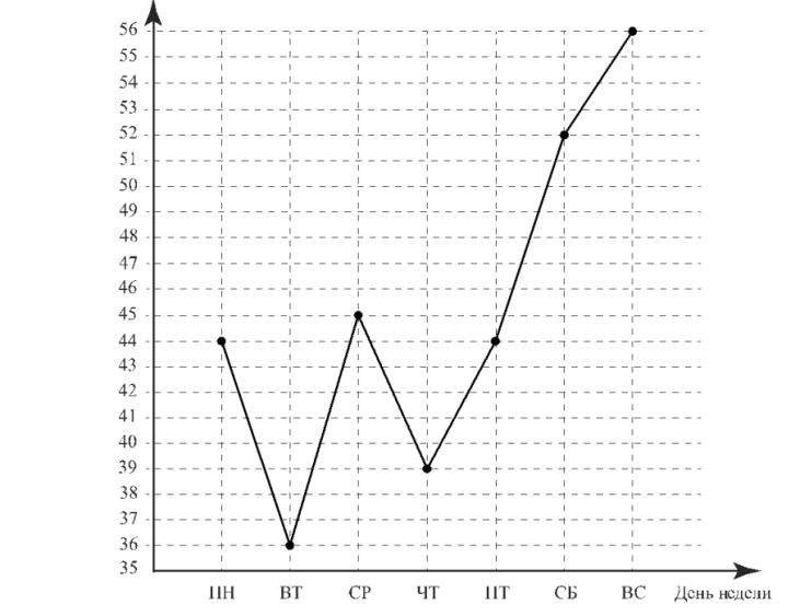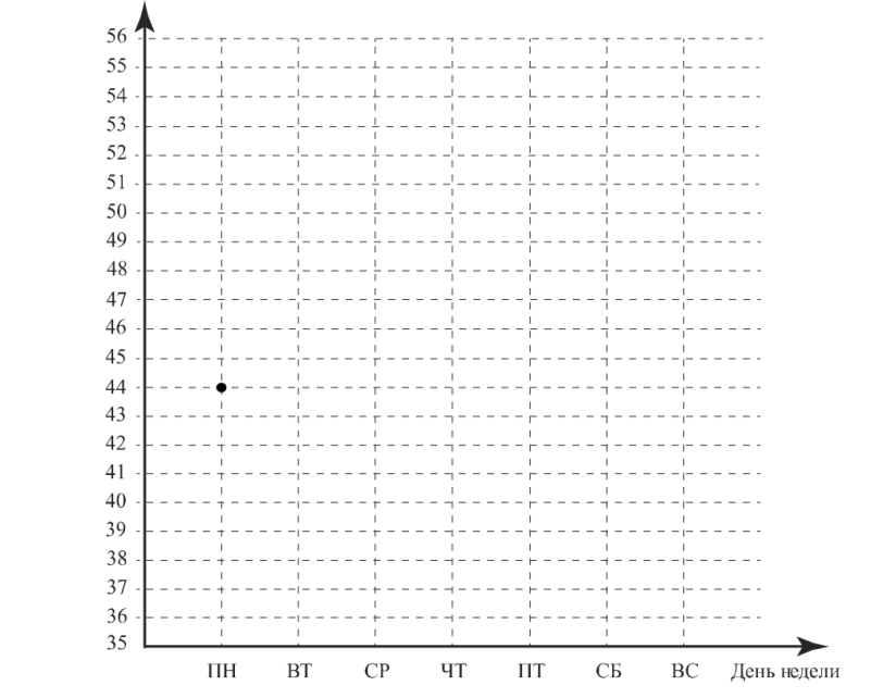2) По описанию постройте график зависимости числа скошенных гектаров от дня недели. Соседние точки соедините отрезками. Точка, показывающая число скошенных гектаров в понедельник, уже отмечена на рисунке.