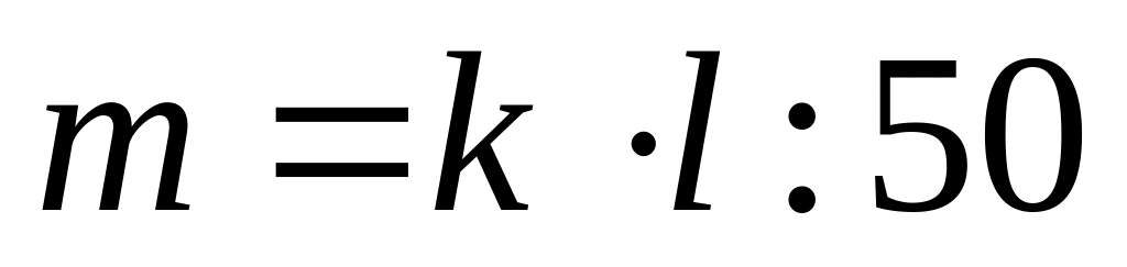 m=k·l:50=190·110:50 = 190:50·110= 3,8·110 = 418 (кг) живой вес коровы.