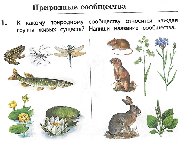 - Какие вопросы задают авторы учебника? (Что такое природное сообщество? Почему цапля живет рядом с лягушкой?)