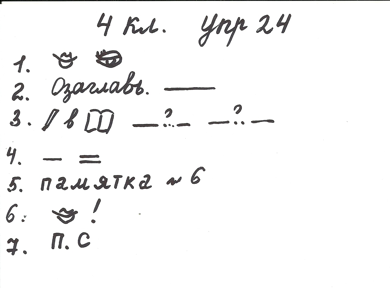 8.Домашнее задание Цель: развитие творческих способнос-тей. | Предлагаю учащимся 4 класса написать сообщение для межпланетной конференции в информации-онной сети «Космонет» жителям сказочной планеты «Предложениус». Предлагаю уч-ся 2 класса подготовить для этих жителей карточки с предложениями, для определения в них основы предложений. Подготовить интересные предложения. Для тех, кому будет трудно это сделать, можно выполнить в рабочей тетради на печатной основе любое упр. По выбору. Благодарю за работу: «Окончен урок и выполнен план. Спасибо, ребята, огромное вам». | Выслушивают, выбирают, записывают. | Выслушивают, выбирают, записывают. | Личностные: выражают позитивное отношение к предстоящей деятельности, имеют право выбора. |