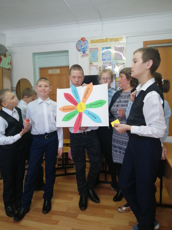 На столе лежат лепестки из цветной бумаги, которые мы с вами приготовили. На лепестках написаны основные правила дружбы. Вспомните, что мы говорили о друге, каким должен быть друг? Выразите своё мнение: каким другом вам хотелось бы быть? Прочитаем и выберем важные качества, которыми должен обладать хороший друг. Выберите соответствующий лепесток и прикрепите его на ватман, и посмотрим какой «ЦВЕТОК ДРУЖБЫ» у нас получились.