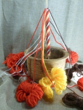 Все возьмем нарезанные шерстяные ниточки (домашнее задание) и будем работать по группам: