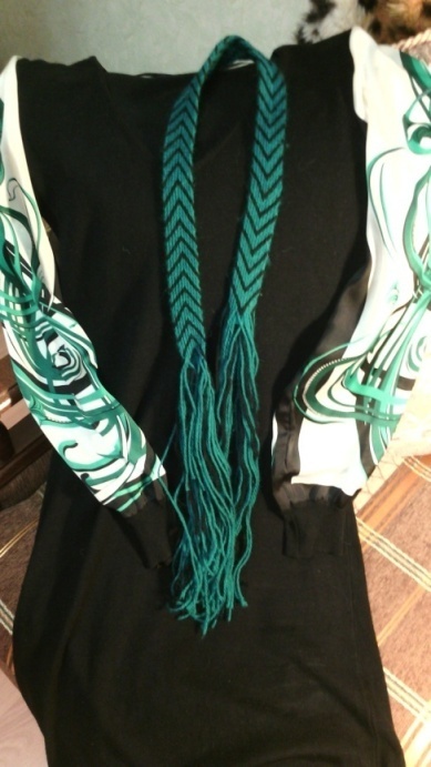 Концы небольшого тканого пояса можно оформить кисточкой.