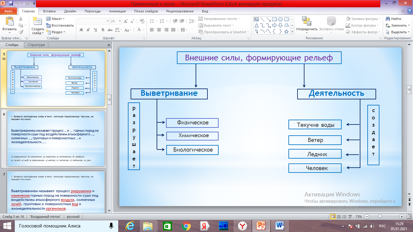 Тема: Выветривание и перемещение горных пород