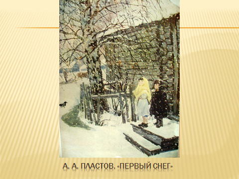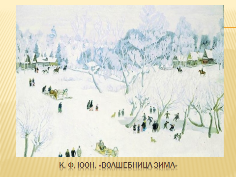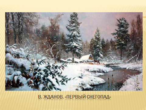 Выступления. Слайд 11 «Пластов. Первый снег», слайд 12 «Юон. Волшебница зима», слайд 13 «Жуковский. Первый снегопад»
