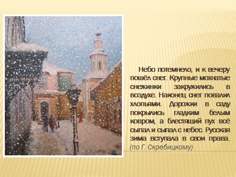 - Русь, Россия – страна света. Может быть, поэтому русский человек так любит время года, когда всё светло, чисто, бело кругом. Я говорю о …